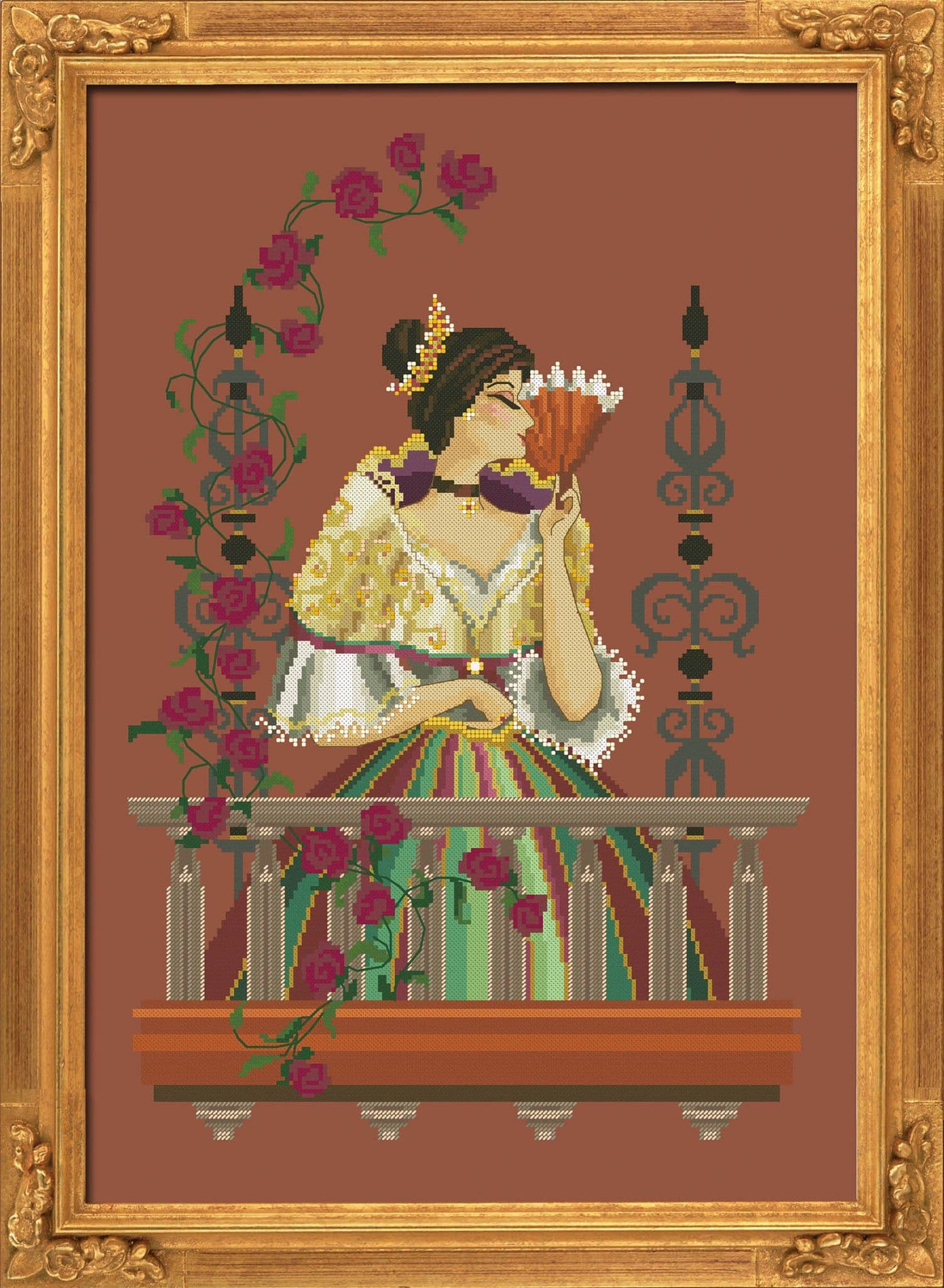 DMC used; 154, 164, 310, 356, 420, 433, 435, 436, 437, 500, 561, 562, 644, 645, 646, 738, 746, 758, 814, 844, 869, 890, 904, 918, 920, 921, 938, 989, 3045, 3046, 3047, 3345, 3371, 3685, 3687, 3777, 3778, 3799, 3803, 3834, 3857, 3866, 4210, E677, E3821, E3852, Blanc