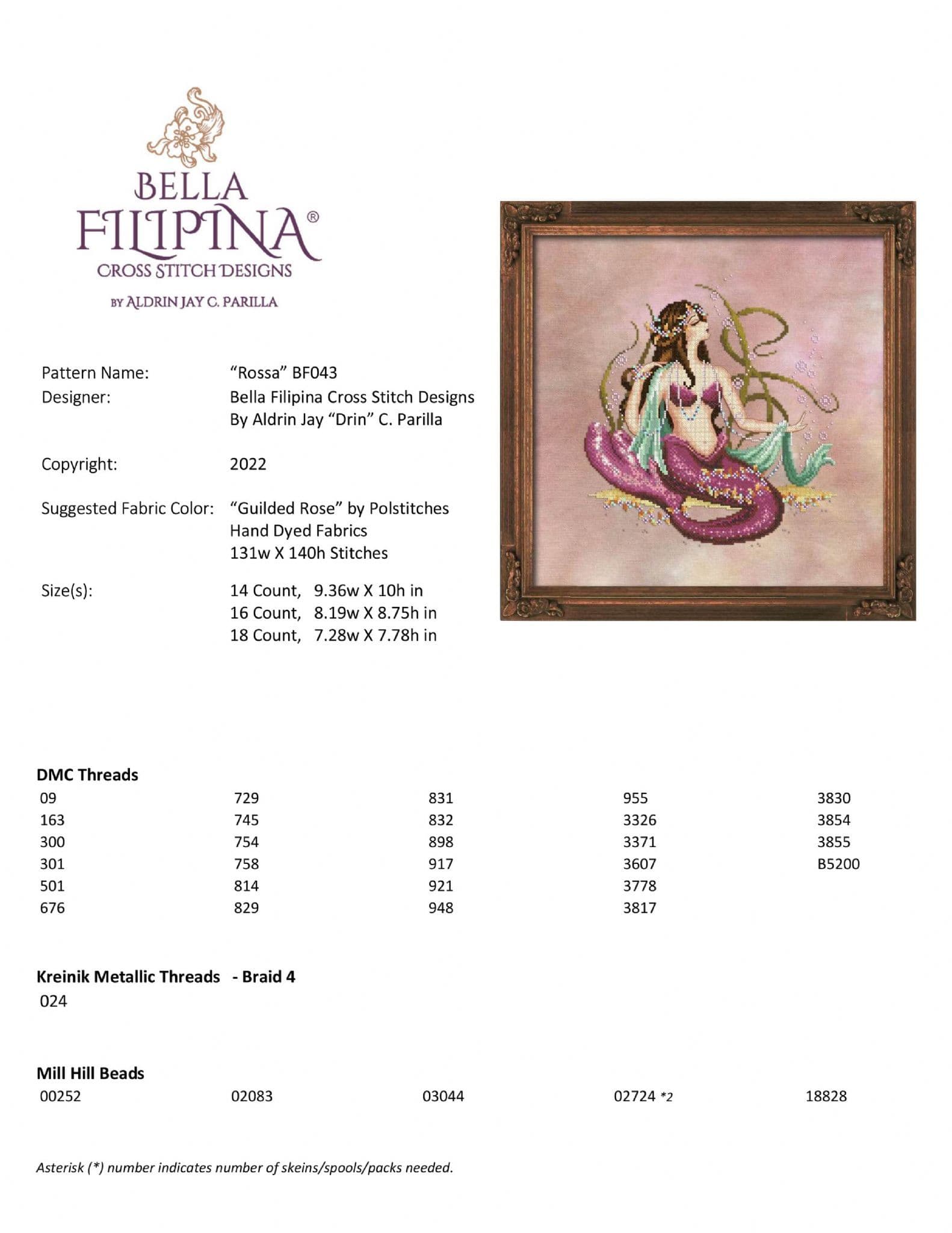 DMC used; 09, 163, 300, 301, 501, 676, 729, 745, 754, 758, 814, 829, 831, 832, 898, 917, 921, 948, 955, 3326, 3371, 3607, 3778, 3817, 3830, 3854, 3855, B5200