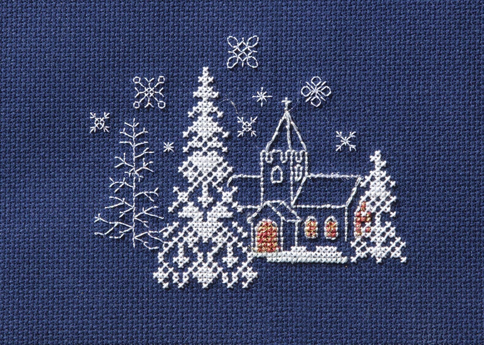 This kit contains: 16 count antique white aida, stranded cottons in a bundle, metallic threads, needle, stitch diagram, instructions, tri-fold blank card and an envelope.