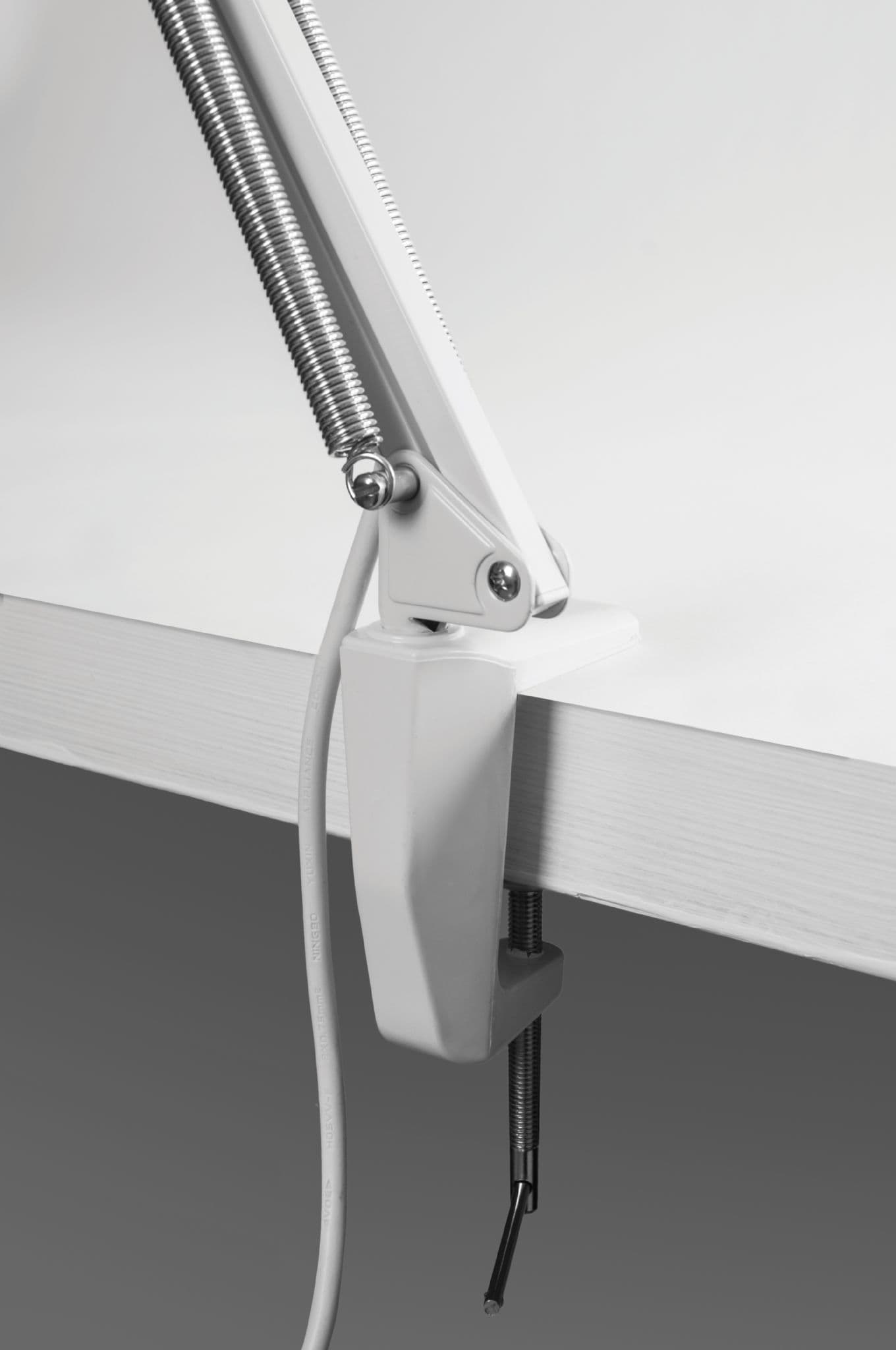 | Natural daylight effect. Low energy. LED technology. Ball & socket head joint for precise positioning. 10cm optical lens quality. 2 x magnification lens. Magnifier dust cover. Secure metal table clamp. Mains operated. White. |